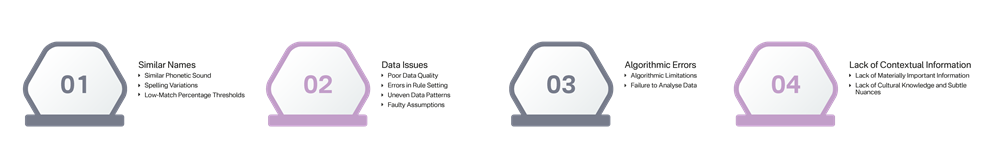 False positives occur when screening software produces potential matches based on partial similarities with client data. However, further investigation reveals that the client does not actually correspond to any listed or individual entity.
