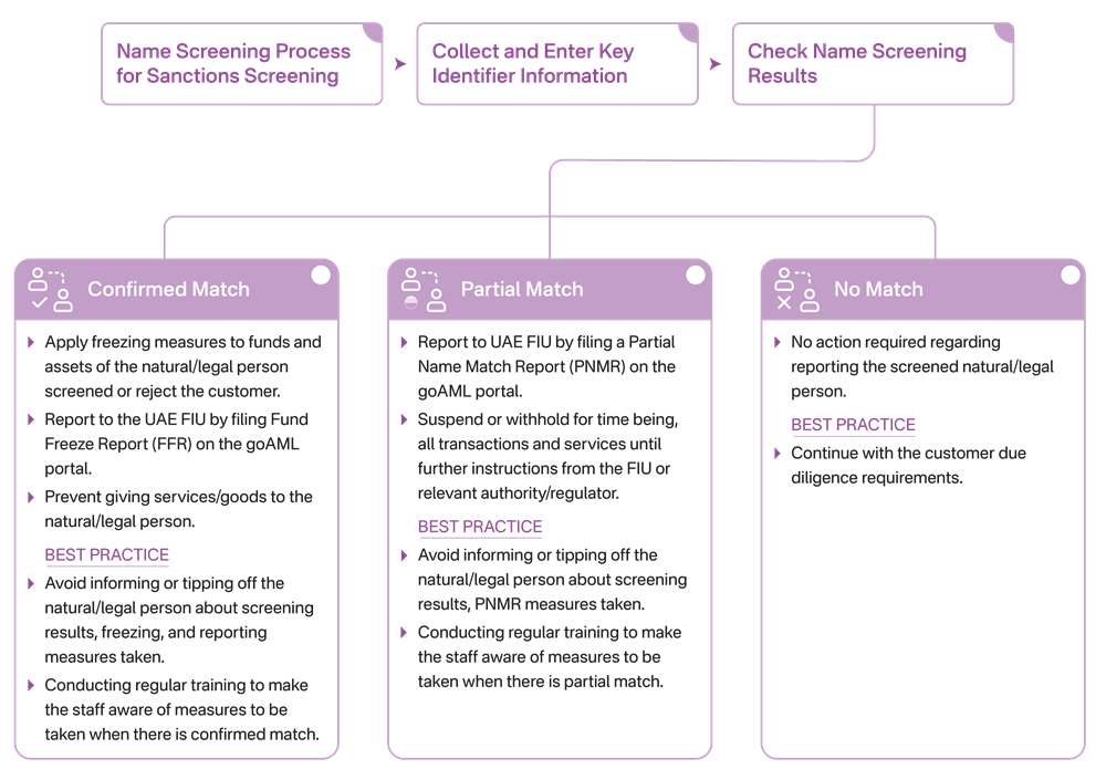 For more insights into Sanctions and TFS Compliance Requirements in UAE, refer to Sanctions Compliance Best Practices for DNFBPs and VASPs.
